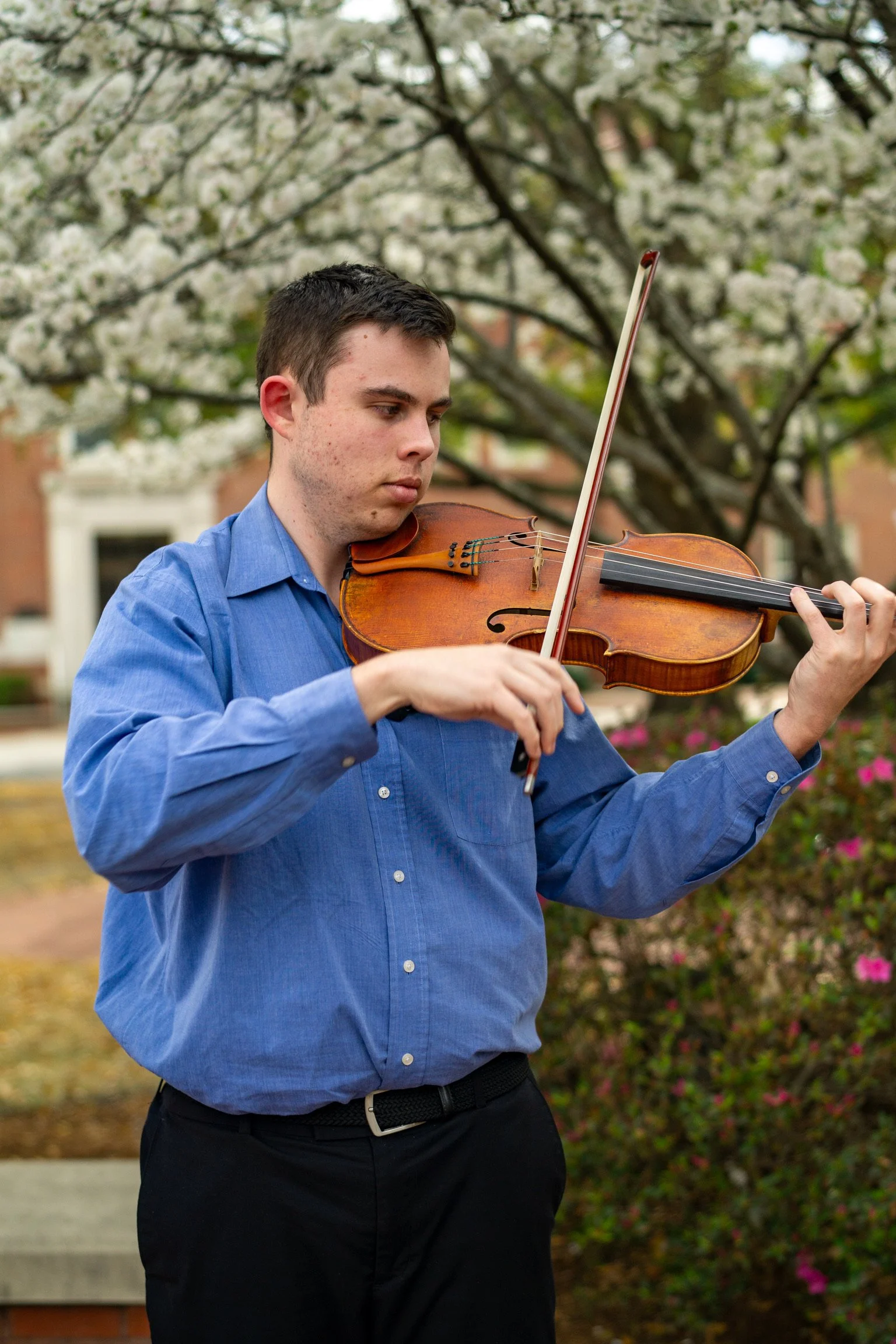 Ford Amerson, a rising young artist and violist from Greenville, NC, began his musical journey at the age of four. He has performed throughout the U.S. in states such as Texas, Florida, North Carolina, South Carolina, and Virginia, and Vermont. With music always being a significant part of his life, he started his own performance business in high school, exploring a variety of musical genres. This venture was sparked by a pivotal experience performing at a concert with Grammy-winning violinist Damien Escobar, which deeply inspired his artistic path.